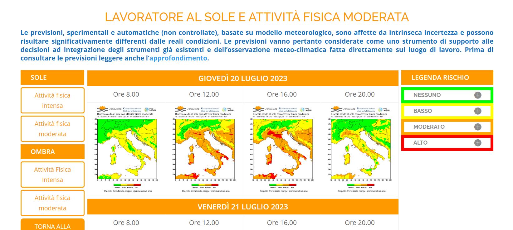 Lo strumento worklimate serve per effettuare delle previsioni del rischio da microclima in funzione delle previsioni meteo.